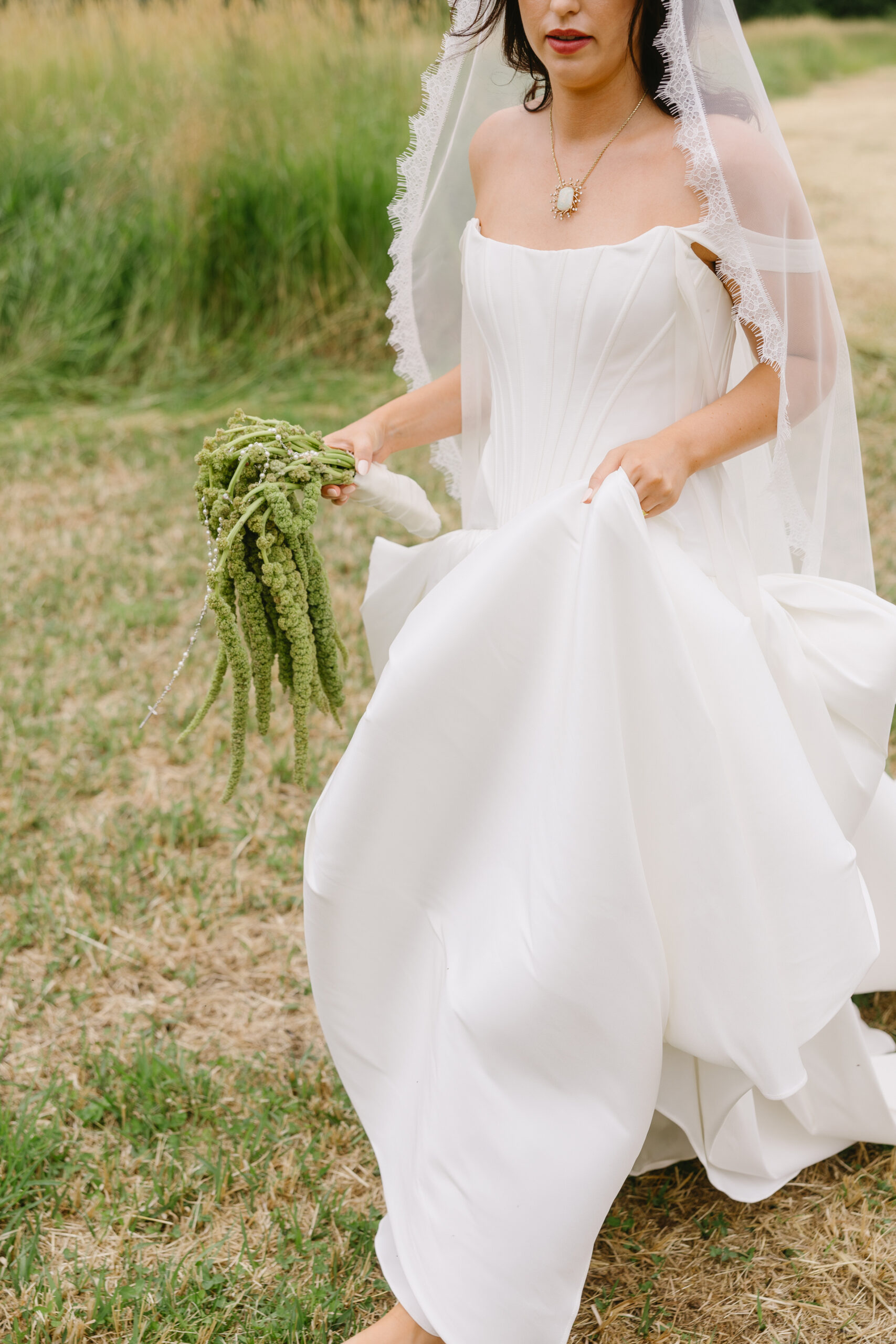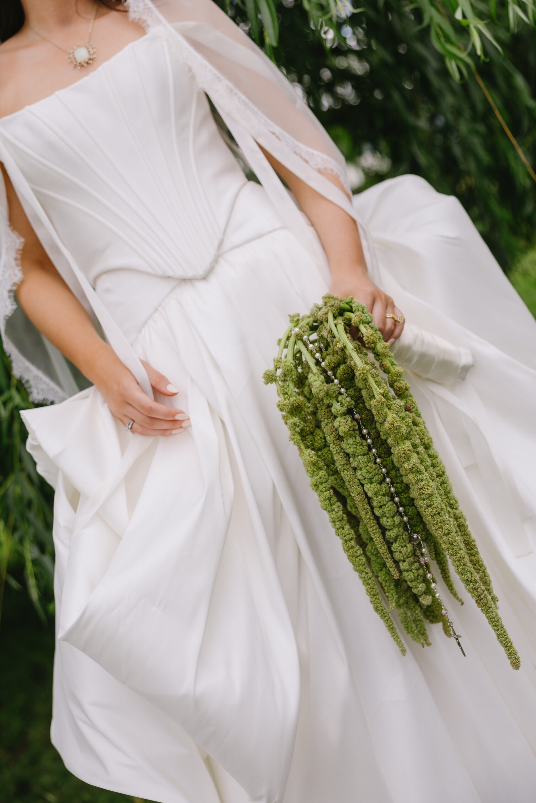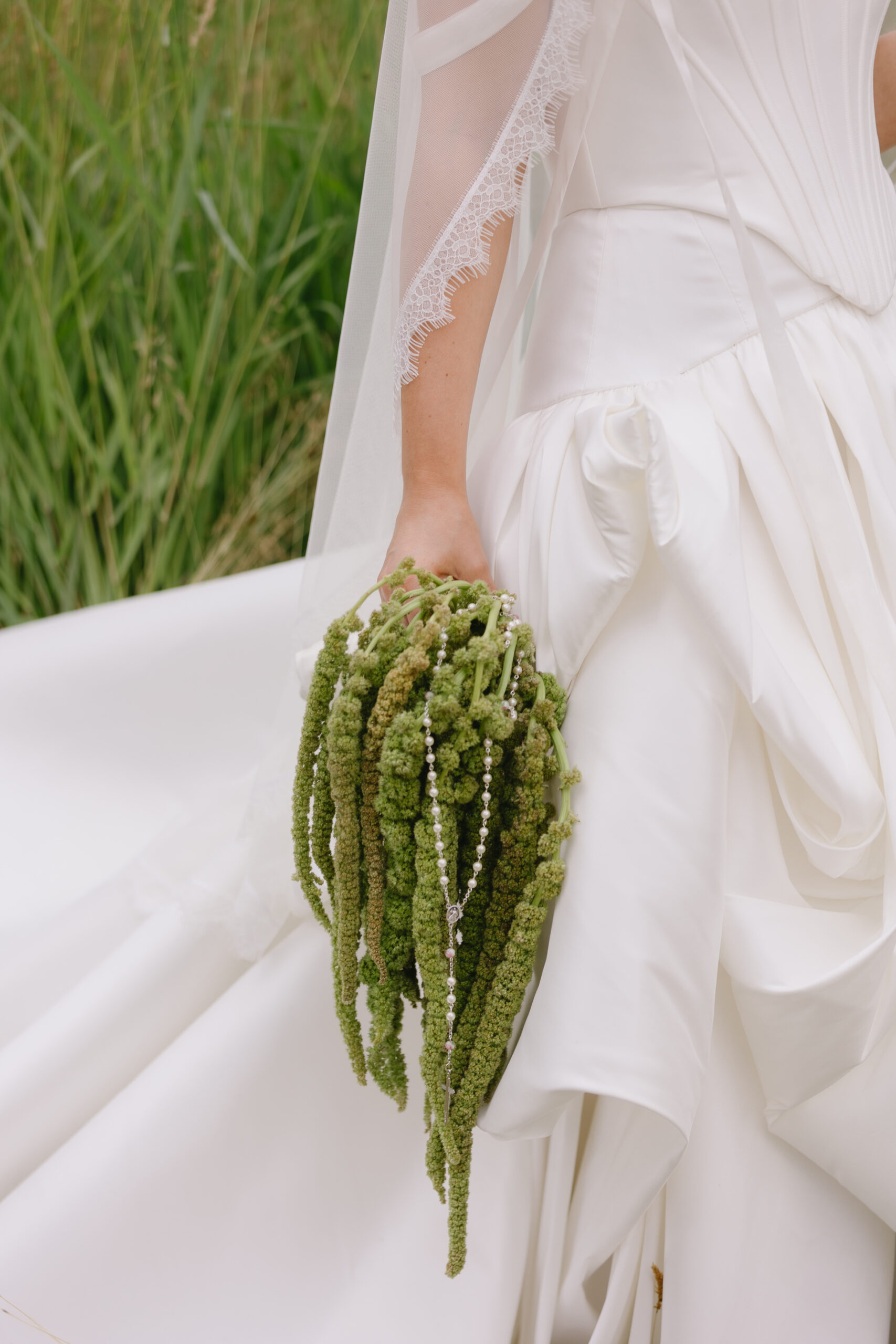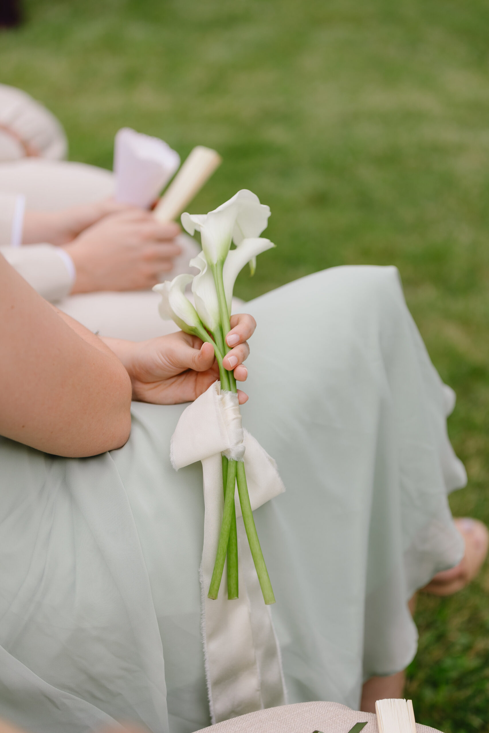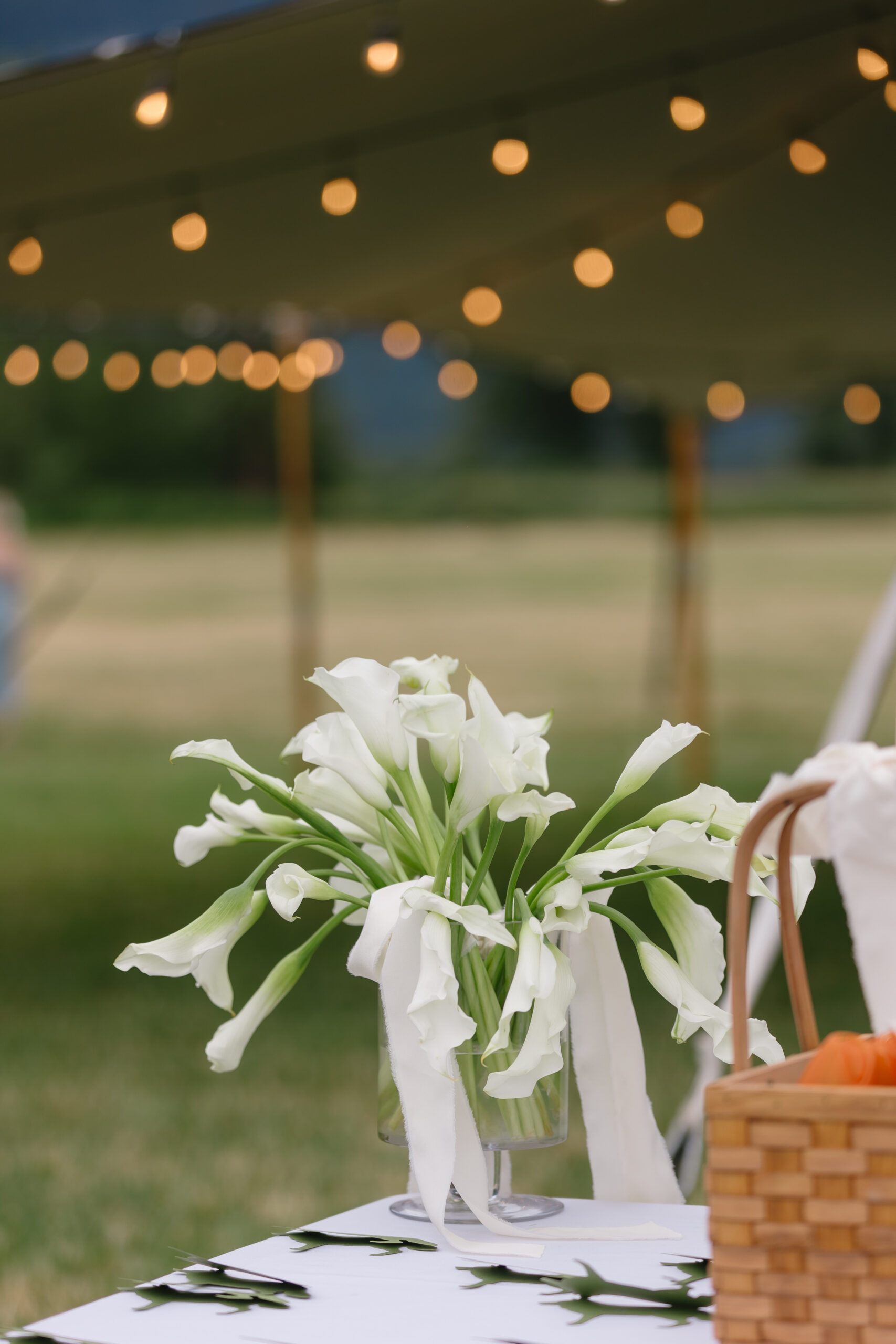 For the floral design, Michelle opted for lilies as the main flower, keeping things simple and elegant. Her bouquet also included green amaranthus, which added soft texture and movement while giving it a slightly wild, natural feel. The floral palette was understated on purpose. Allowing the beauty of the couple, the ceremony, and the landscape to shine through. Every bloom felt intentional and thoughtful, giving the day a light, airy feel that matched the couple’s personalities perfectly.