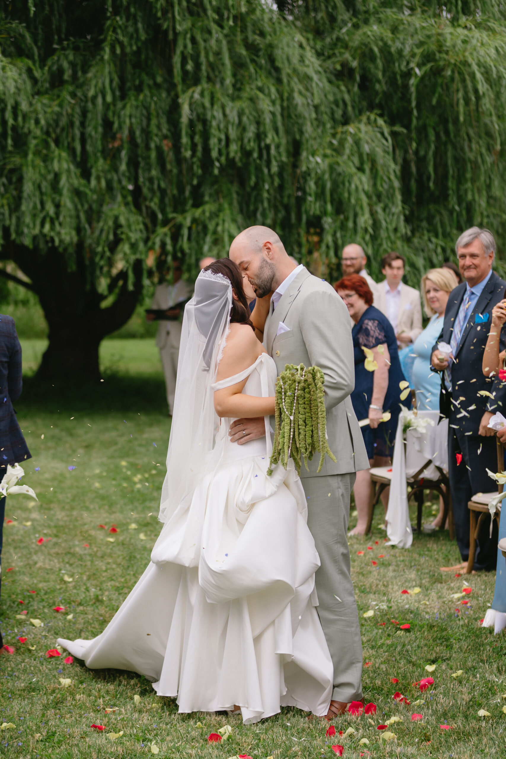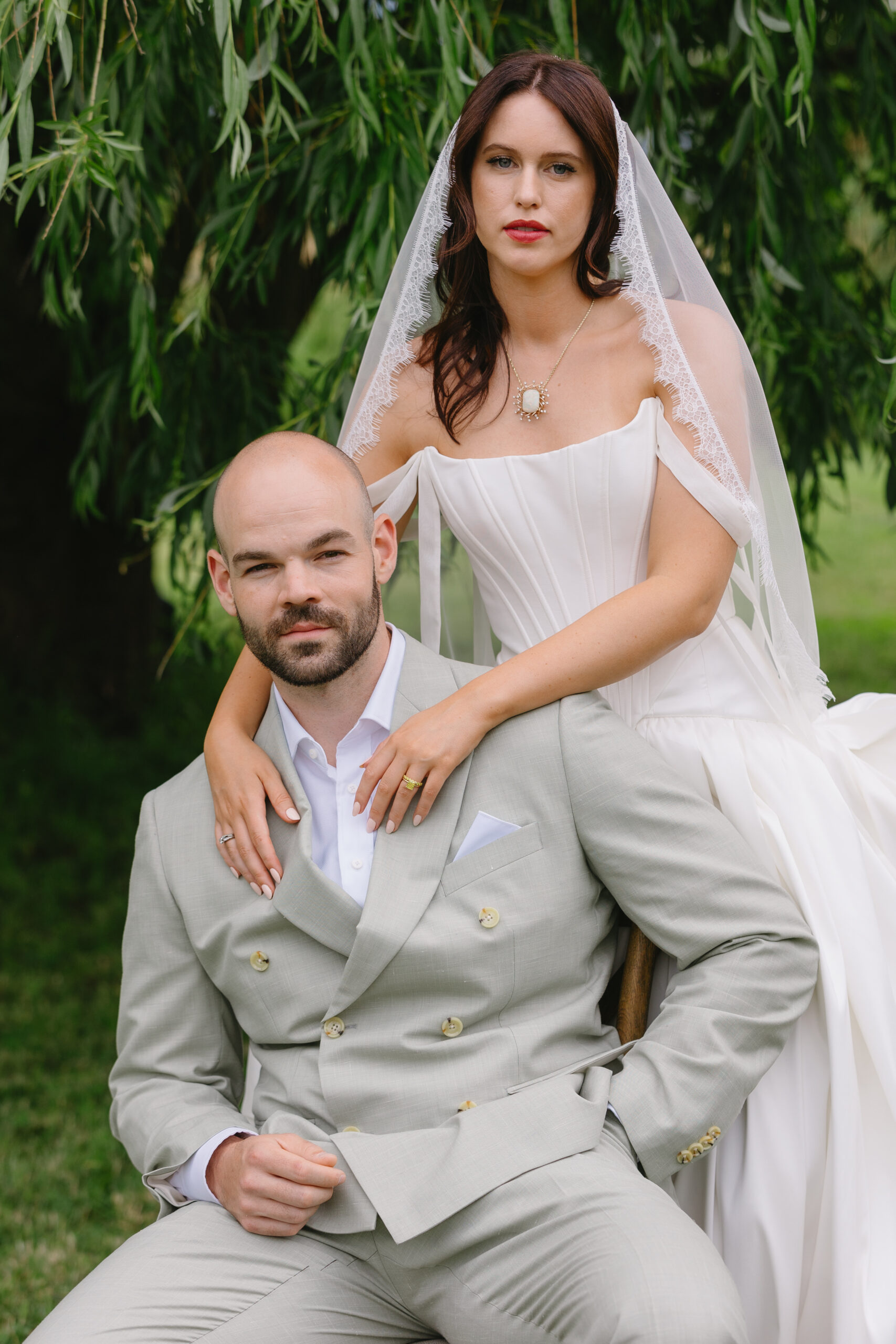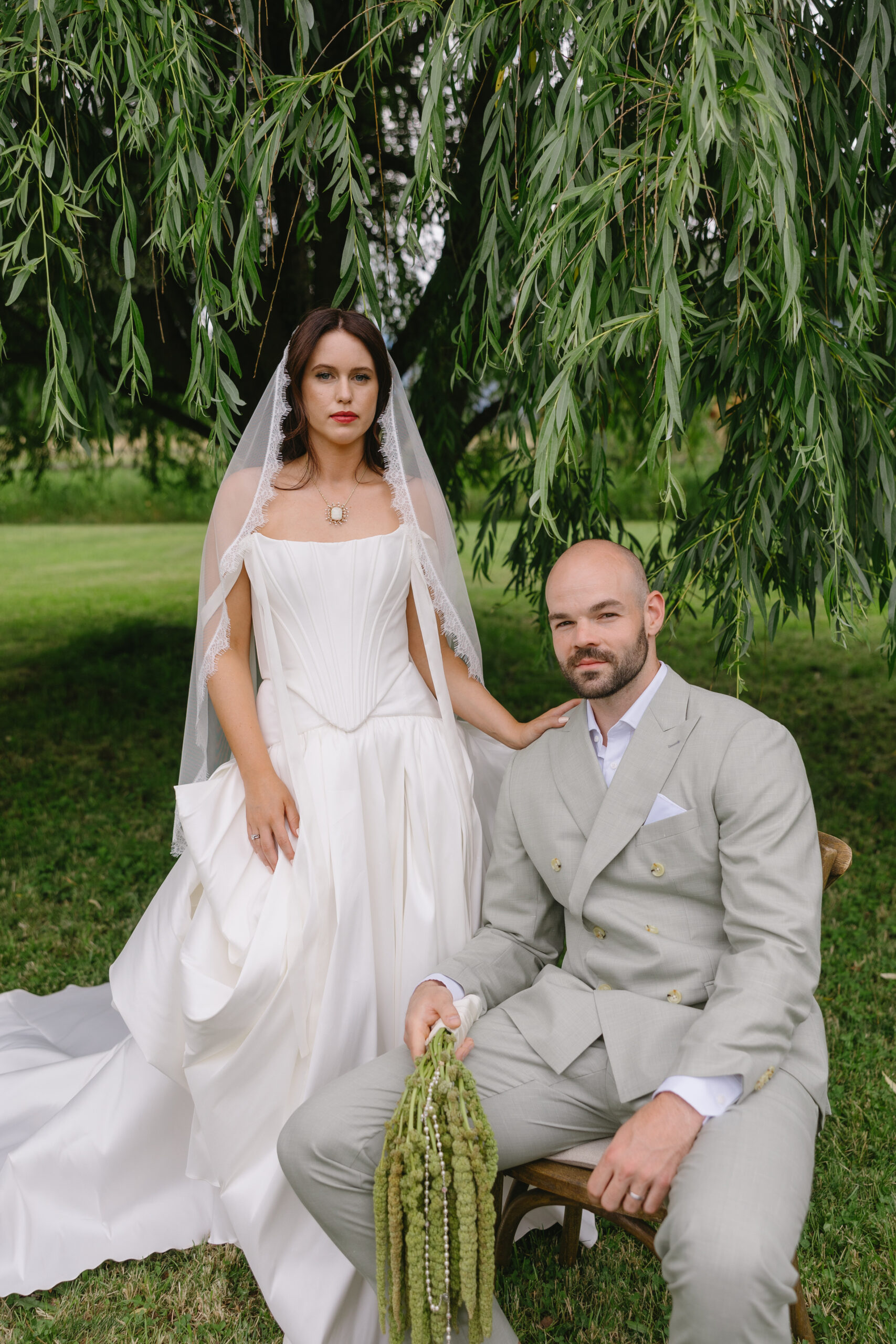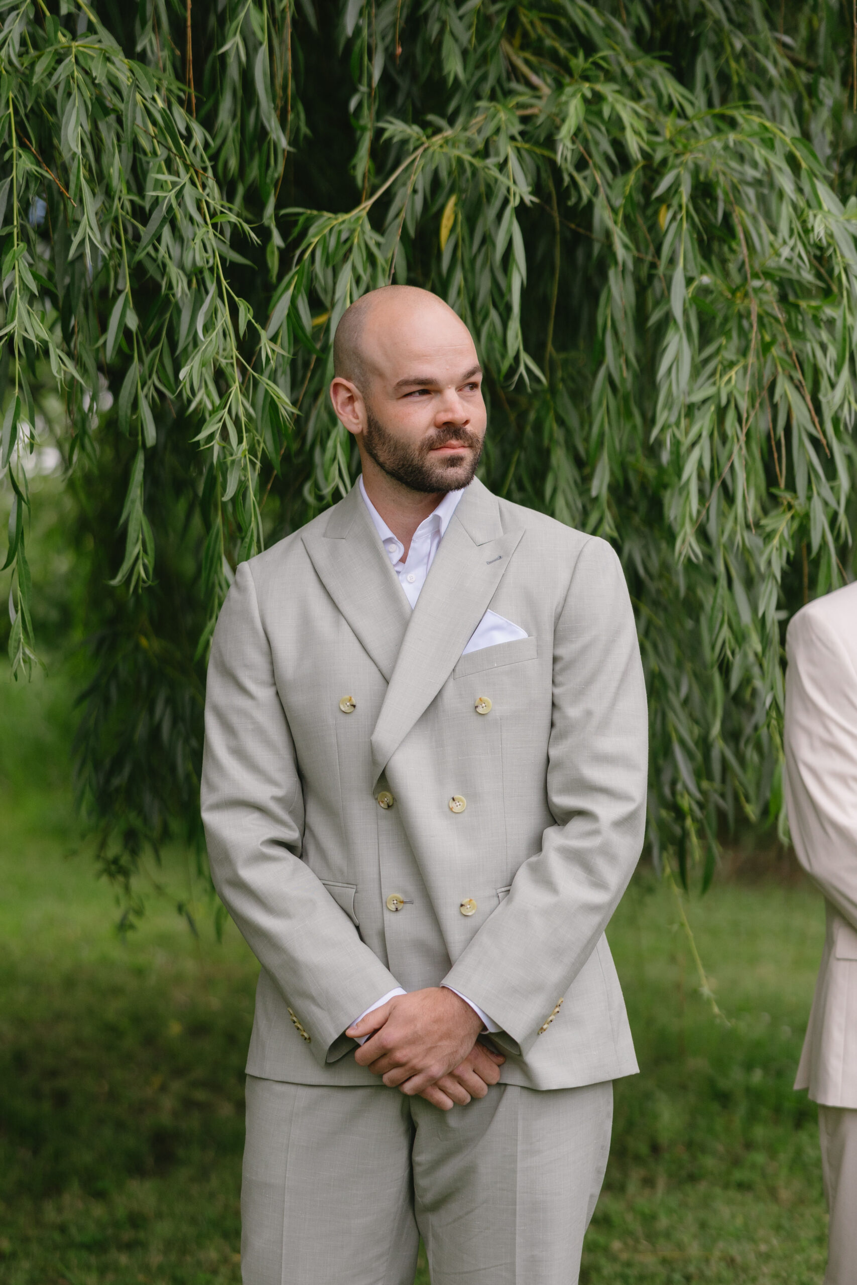 The ceremony was held on the lawn under a magnificent willow tree. A setting that was peaceful, intimate, and naturally stunning. The willow’s sweeping branches provided a soft, romantic backdrop. While the surrounding greenery and open space added a feeling of quiet serenity. Guests gathered on the grass, surrounded by the gentle rustle of leaves and the soft mountain breeze. Creating a natural, relaxed atmosphere that encouraged connection and presence. Michelle and Andrew’s vows felt heartfelt and genuine, and the moment was a perfect balance of emotion and ease. A true reflection of who they are together.